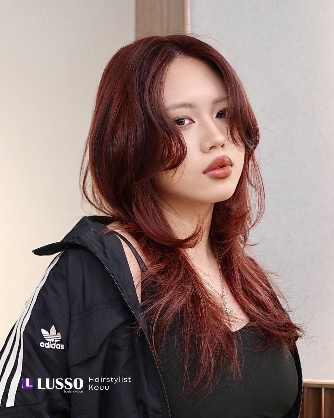 樹莓紅髮色在不同光線下的深淺層次感,也與輕羽剪的輕盈層次相呼應,讓髮型看起來更有質感與立體感。適合想在自然低調中又帶點個性魅力的人,輕鬆展現自信與優雅。