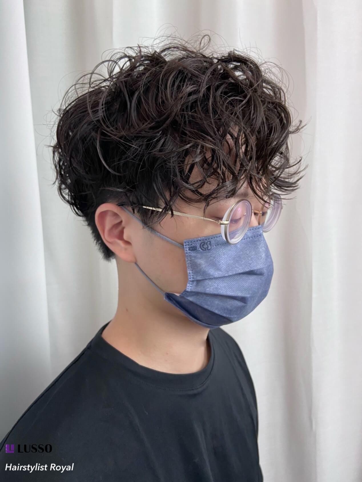使用圓形加方形剪裁,保留部分長度,也留下部分厚度,對於細軟髮男性會有顯著的效果,搭配上冷燙,整理的方式就會非常簡單,在濕髮時用上烘罩就能夠將捲度完整成形,細軟髮搭配在濕髮均勻塗抹慕斯,更能將支撐度低的頭髮給完整支撐,讓頭髮能蓬鬆有型。